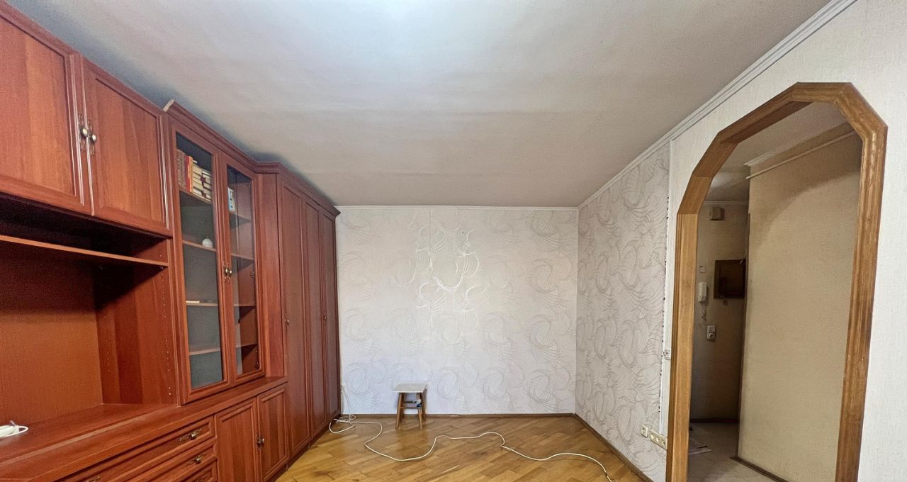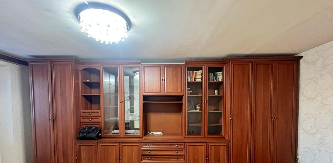 Есть балкон, встроенная кухня, стенка в комнате, кресло-кровать. Ничего больше из мебели нет и не будет.