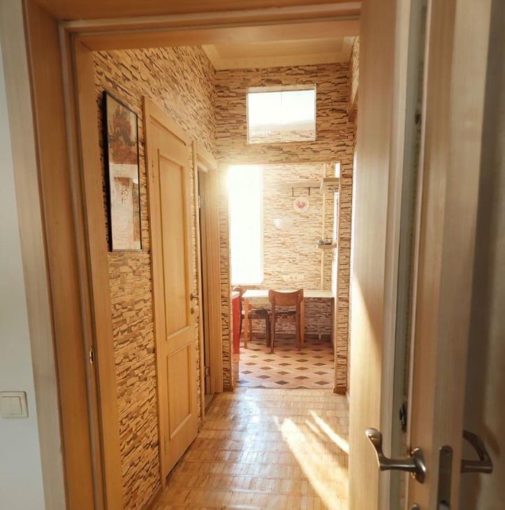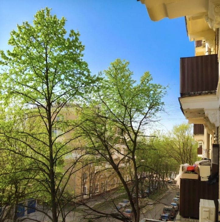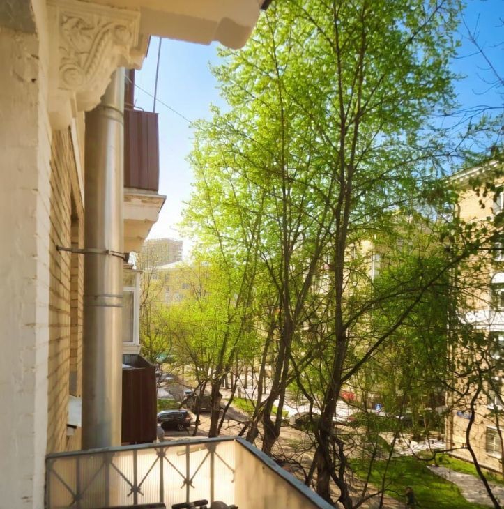 Квартира на 2й Песчаной улице — сталинская с высокими потолками (3 м), большими окнами и балконом. Вид на зелёные дворы и старые липы, тихо, без столичного шума. Планировка с изолированной комнатой и раздельным санузлом: спальня с паркетом в ёлочку и лепными карнизами, просторная кухня и прихожая после ремонта, обои с декоративным камнем, большая ванная. Толстые кирпичные стены обеспечивают теплоизоляцию и стабильный микроклимат. Рядом сквер с фонтаном ГеоргиуДеж (1955 г.) и старинные парки.