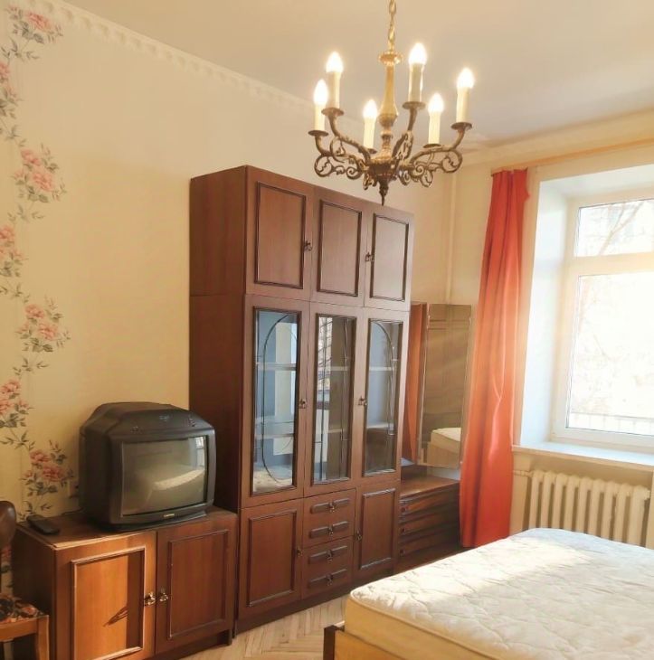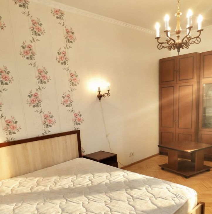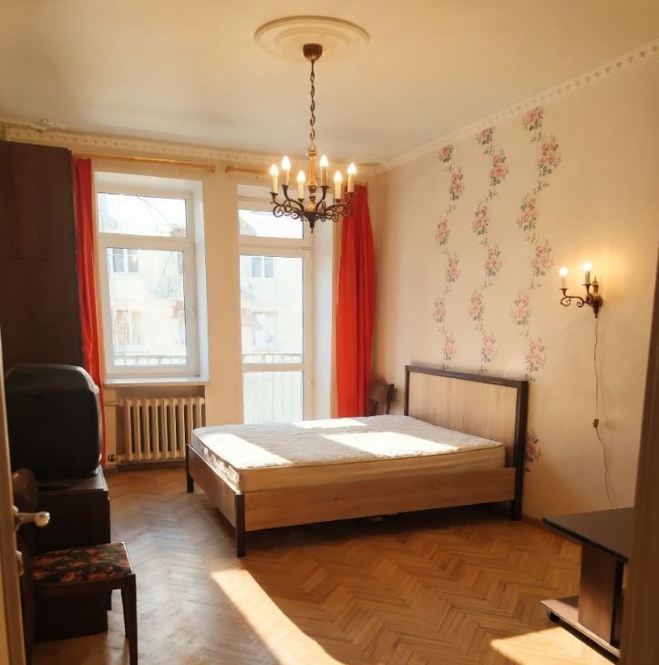 Квартира на 3-м этаже шестиэтажного дома с лифтом, в комнате балкон со старинной лепниной, сдается как однокомнатная (вторая комната закрыта с вещами хозяев) комната большая, просторная.