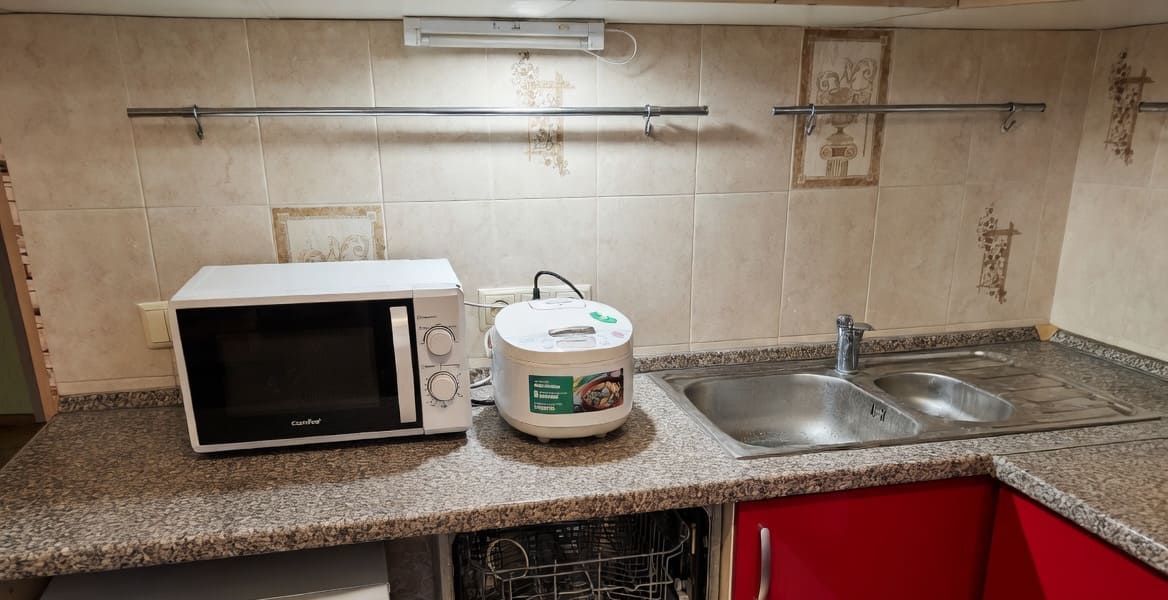 В квартире выполнен косметический ремонт. Современная сантехника и бытовая техника для комфортного проживания: большой холодильник с морозилкой Liebherr, полноценная посудомоечная машина Hotpoint Ariston, стиральная машина, газовая плита с духовкой (4 конфорки), микроволновка (СВЧ), и мультиварка, мебель везде, посуда, столовые приборы и кухонная утварь, телевизор, утюг, пылесос, гладильная и сушильная доски, большая полноценная двуспальная кровать с ортопедическим матрасом, раздельный санузел, полноценная ванная, современная газовая колонка-автомат (без необходимости зажигания или поддержания постоянного горения огня), что обеспечивает горячей водой круглый год.