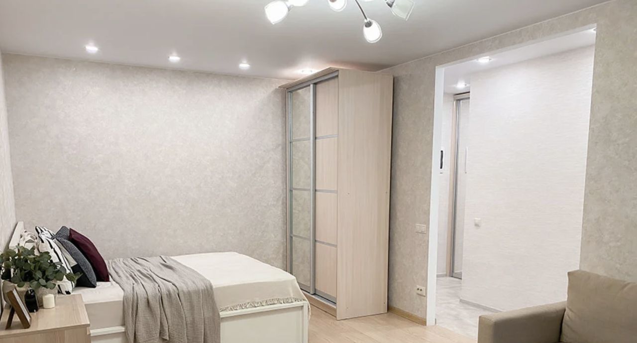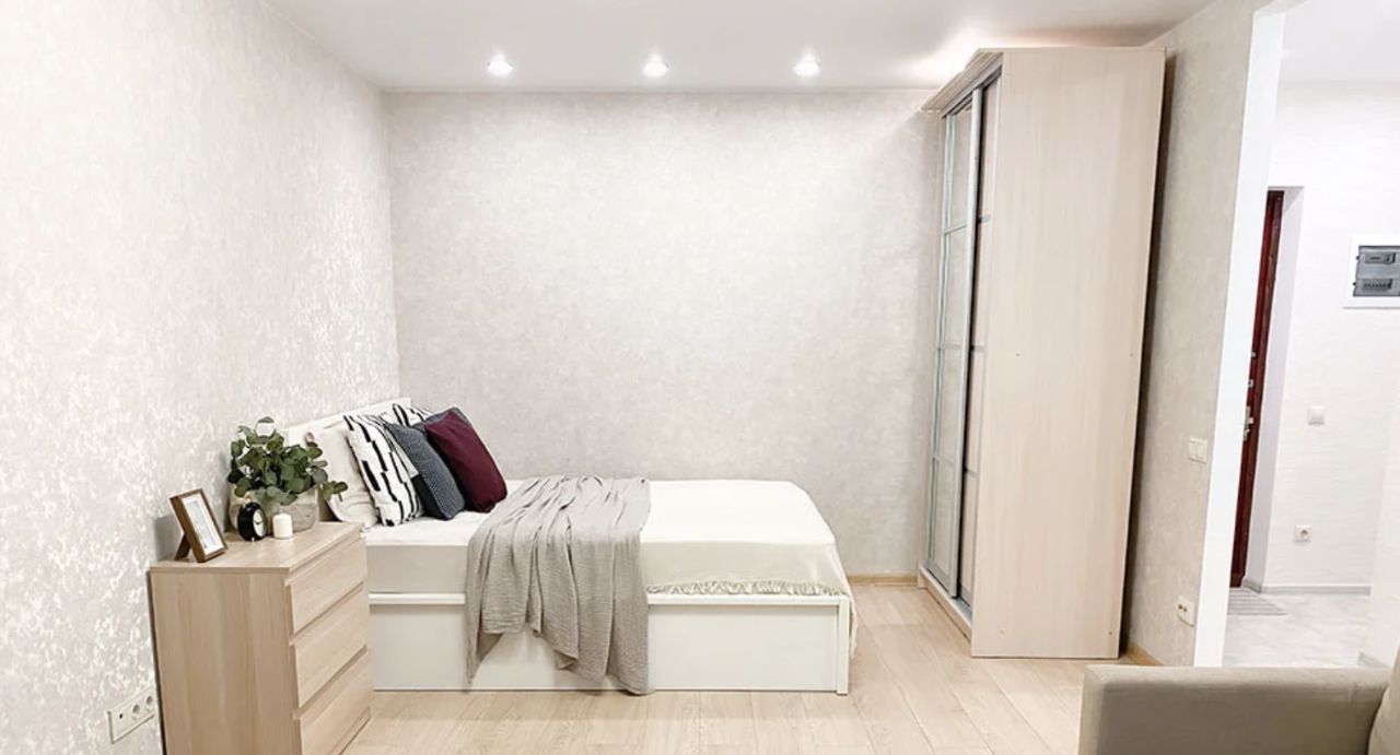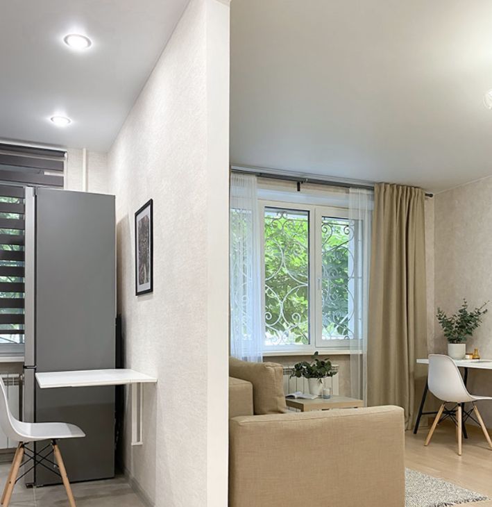 Интерьер выдержан в спокойных тонах и продуман до мелочей: мягкий свет, приятная текстура мебели и сбалансированное пространство создают атмосферу настоящего дома.