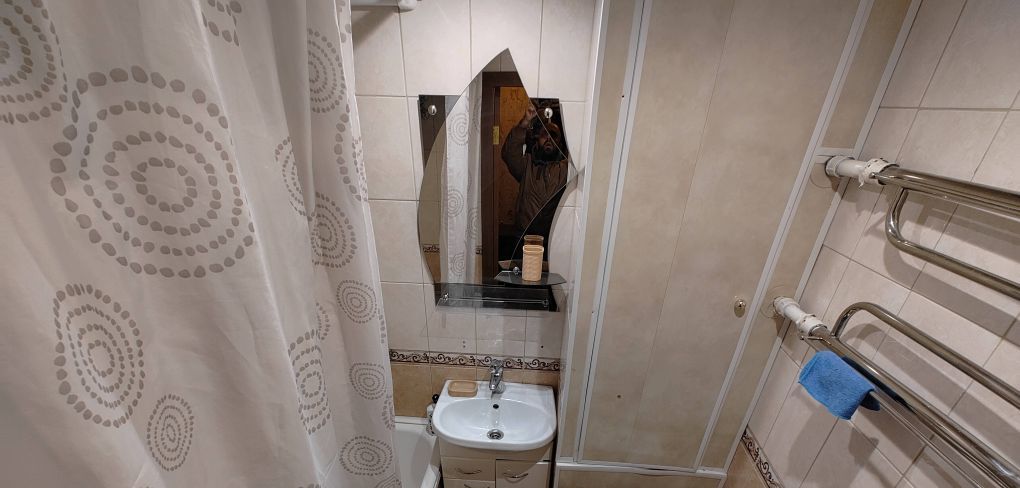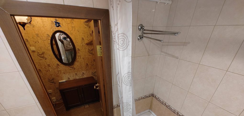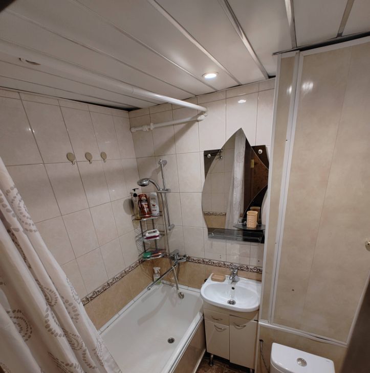 Санузел совмещённый, с ванной и стиральной машиной. В прихожей есть место для хранения вещей. Дом панельного типа, расположен на шестом этаже из двадцати двух, что обеспечивает тишину и комфорт. Парковка за шлагбаумом во дворе.