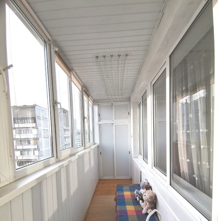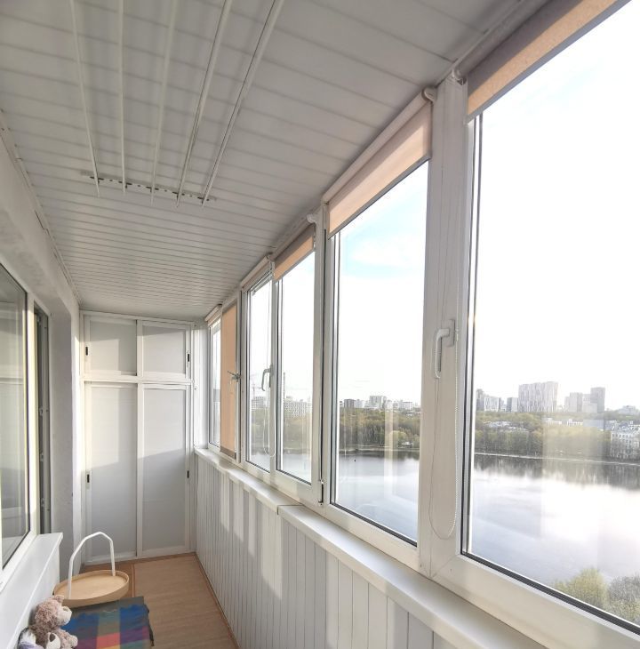 Большая застекленная лоджия с видом на пруд и парк. В непосредственной близости вся необходимая инфраструктура, парк для прогулок, пляжного отдыха и занятия спортом.