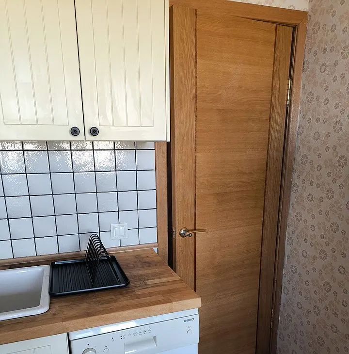 Просторная кухня оборудована необходимой техникой: холодильник, варочная панель, духовой шкаф и стиральная машина. Есть вся необходимая мебель - два раскладывающихся дивана, гардероб очень вместительный.