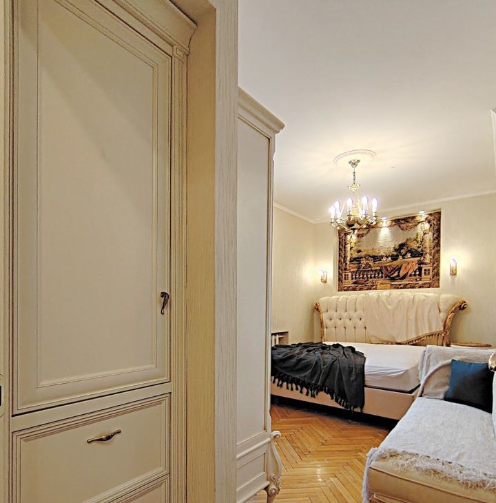 Стильная квартира с атмосферой дореволюционной купеческой Москвы. Обстановка сдержанного французского барокко деликатно дополнена качественным современным оборудованием для комфорта. Квартира тихая и солнечная, по тёплому дубовому паркету приятно ходить босиком, на присоединённой лоджии подогрев пола, выделено рабочее место и уходовый уголок. Достойный кирпичный дом (башня Вулыха) с консьержем. Рядом несколько парков и скверов с прудами, до метро 5 минут пешком. Для одного человека - пары.