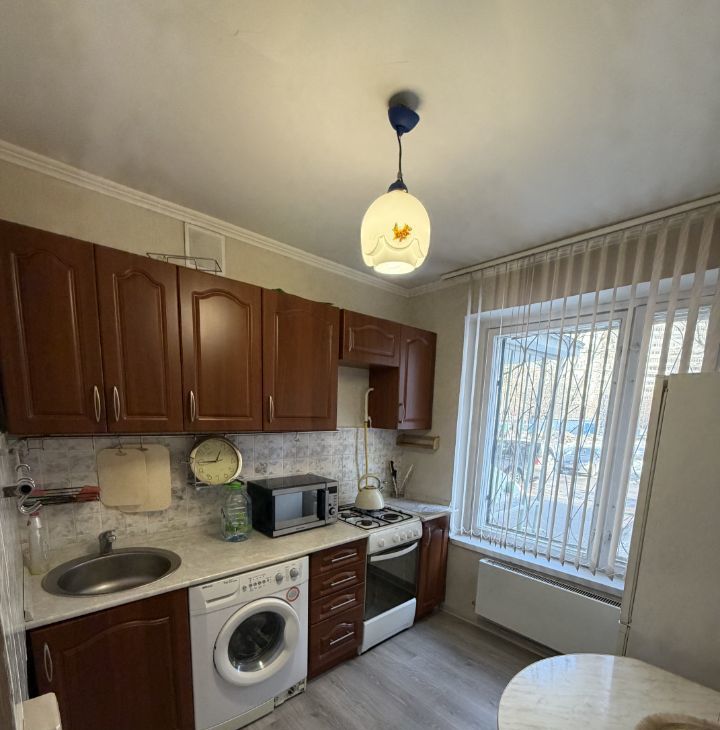 Сдаётся уютная однокомнатная квартира в панельном доме 1969 года постройки. Общая площадь квартиры составляет 33 кв. м, из которых 21 кв. м — жилая площадь и 6.4 кв. м — кухня. Квартира расположена на 1 этаже 9-этажного дома. Высота потолков — 2.64 метра. До метро можно добраться на автомобиле за 4 минуты.