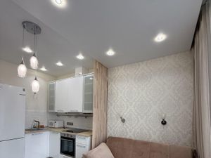 В квартире есть всё необходимое для комфортного проживания: современная мебель на кухне и в комнате, а также полный набор техники — кондиционер, холодильник, посудомоечная машина, телевизор и стиральная машина. Ванная комната оборудована душевой кабиной. Для удобства жильцов предусмотрен интернет.