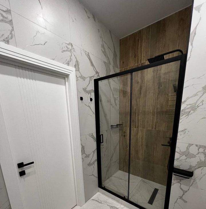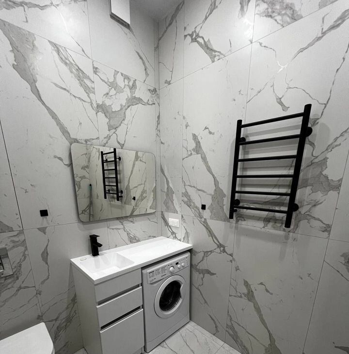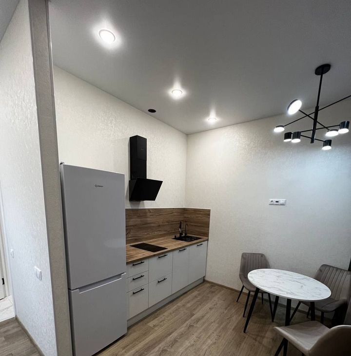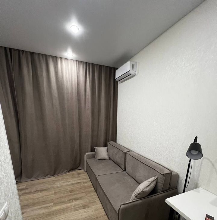 В квартире сделан стильный и современный ремонт. В комнате и на кухне есть вся необходимая мебель, что позволяет сразу заехать и комфортно жить. Из техники в наличии: кондиционер, холодильник и стиральная машина. Ванная комната оборудована душевой кабиной, совмещенный санузел удобен и просторен.