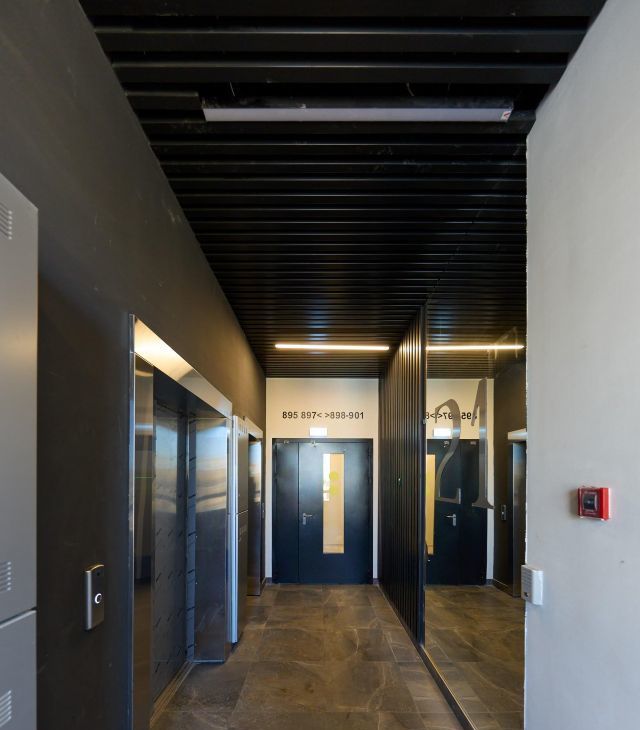 Дом оснащен двумя пассажирскими и одним грузовым лифтом, поэтому можно без проблем подниматься на верхний этаж. Парковка наземная, также имеется подземный паркинг за доп плату, что удобно для владельцев автомобилей.