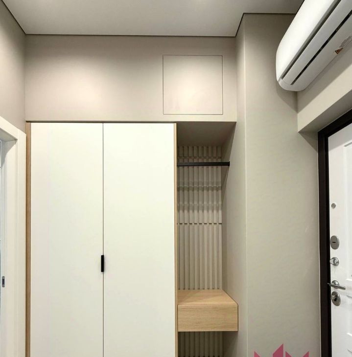 При входе вместительный шкаф. В кухонной зоне установлена качественная бытовая техника. Оборудована зона для отдыха.