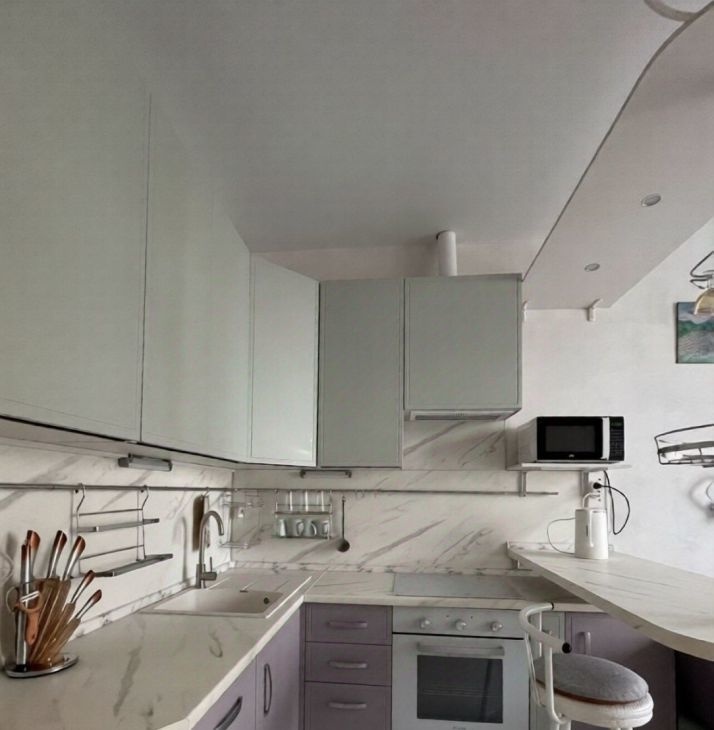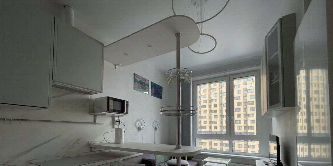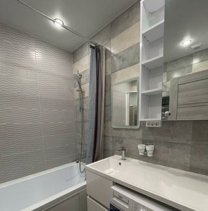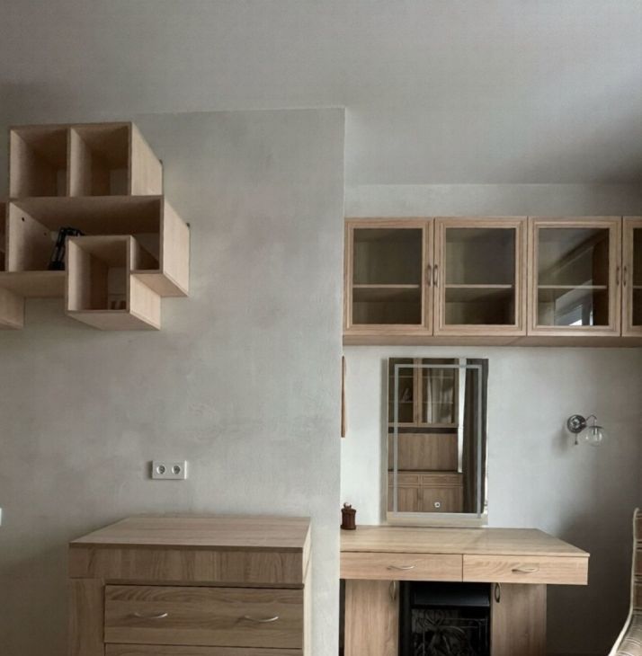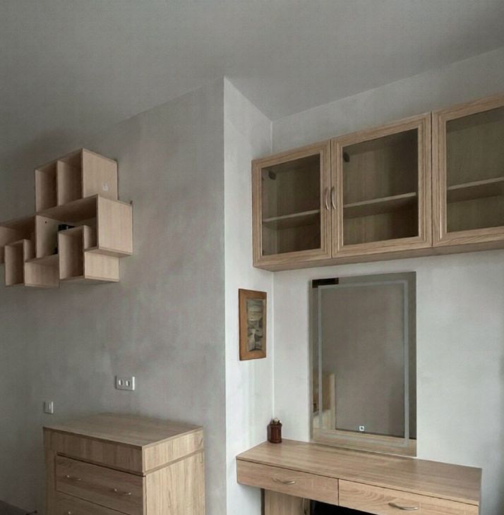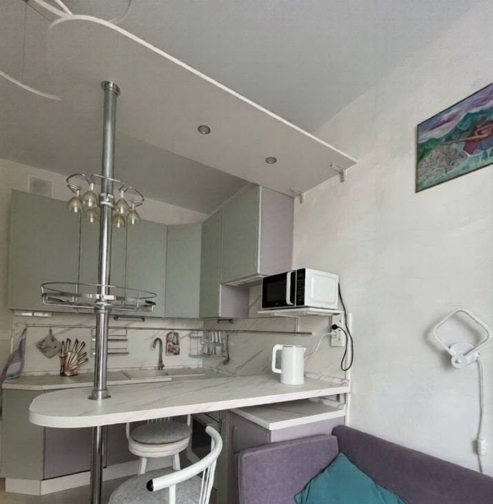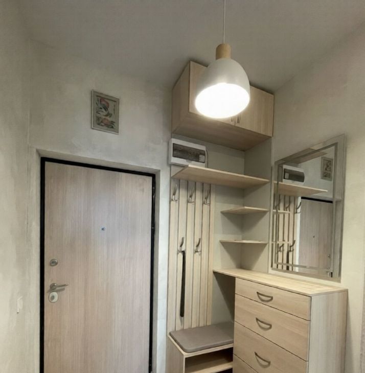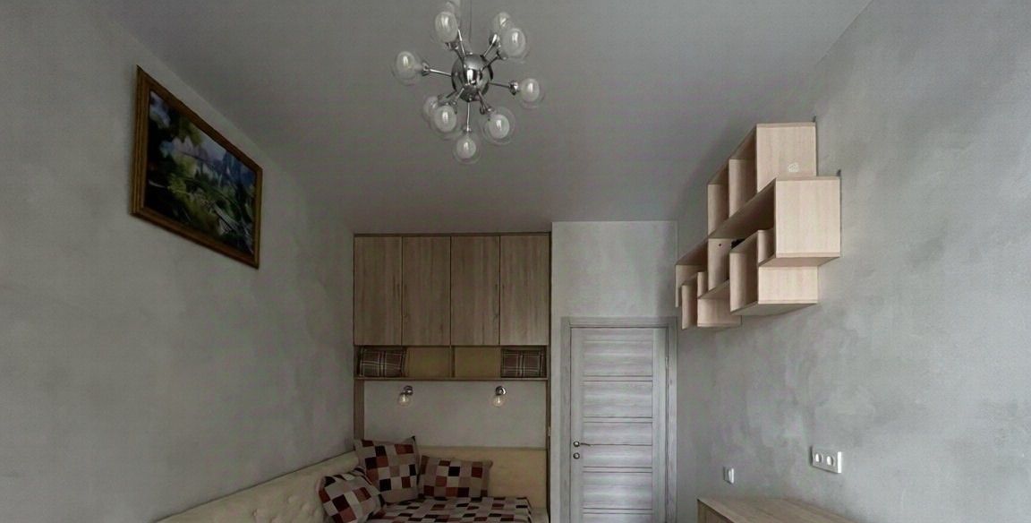 Полностью готова для проживания, имеется вся необходимая мебель - вместительная гардеробная, кровать, телевизор, диван, комод, стол. Кухонная зона с барной стойкой! На кухне имеется все необходимое - индукционная плита, есть духовой шкаф, посудомоечная машина, холодильник, вытяжка, микроволновка, чайник, вместительные шкафчики. Совмещенный санузел с ванной, зеркало с подсветкой и встроенной стиральной машинкой. В спальной комнате есть электрический камин, а также шкафы-трансформеры с раскладывающимся рабочим столом и выдвижной гладильной доской!