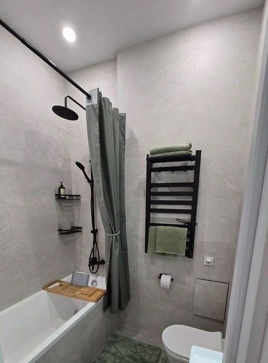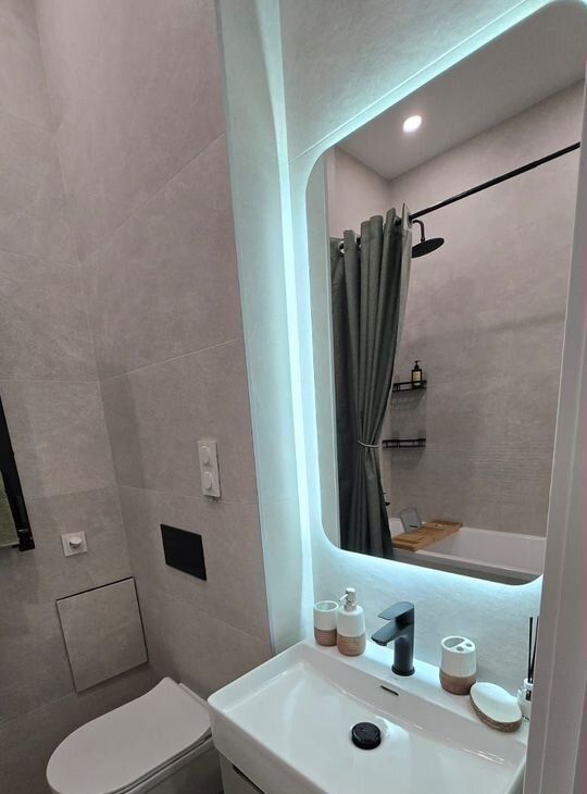 Санузел совмещённый, оформлен в современном стиле с качественной сантехникой. В квартире есть кондиционер, что обеспечит комфорт в любое время года.