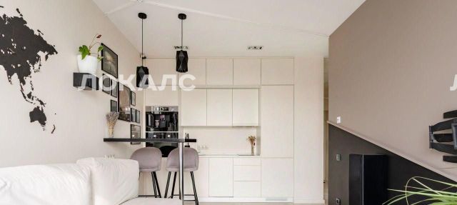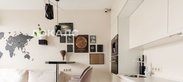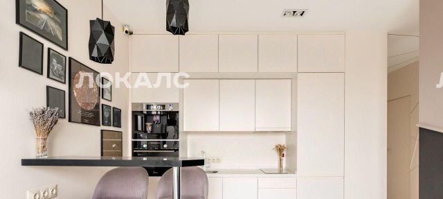 В квартире есть вся необходимая мебель и техника, включая встроенную кофе-машину. Практично и выглядит красиво.