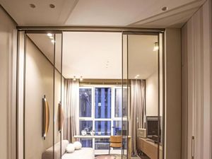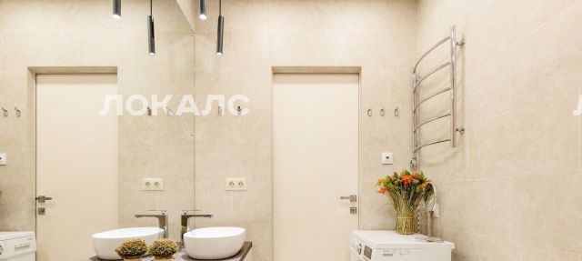Квартира оборудована системой "умный дом" — можно бесконтактно открывать шторы/воду/свет. Входная дверь открывается с помощью "умного ключа" по коду или отпечатку пальцев