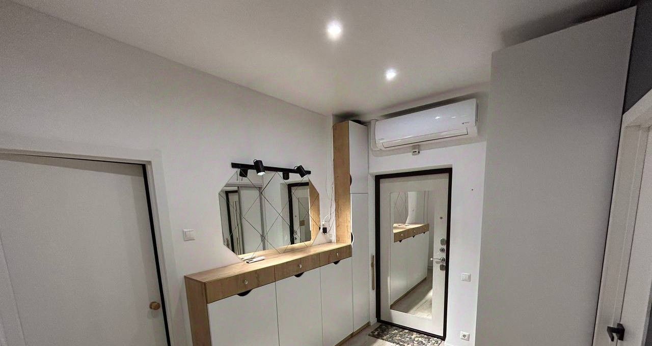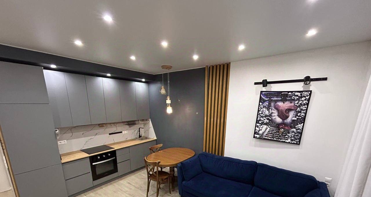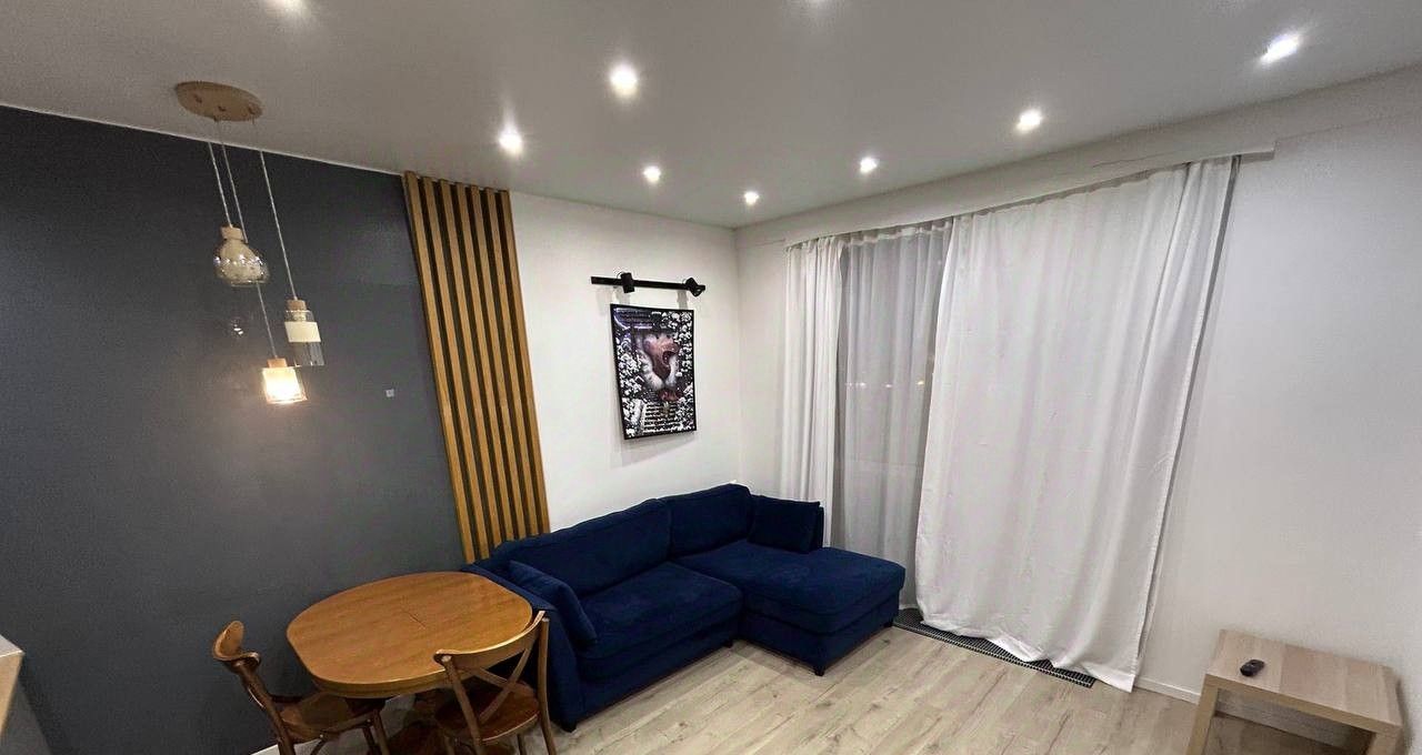 В квартире есть всё для комфортного проживания, мебель и бытовая техника. Квартира состоит из кухни-гостиной, спальни, есть гардеробная.