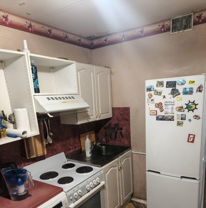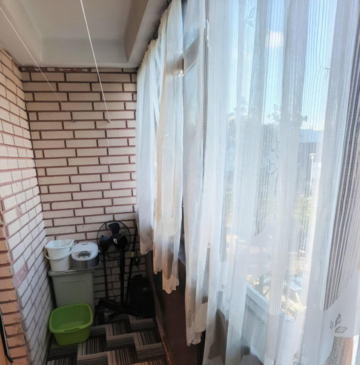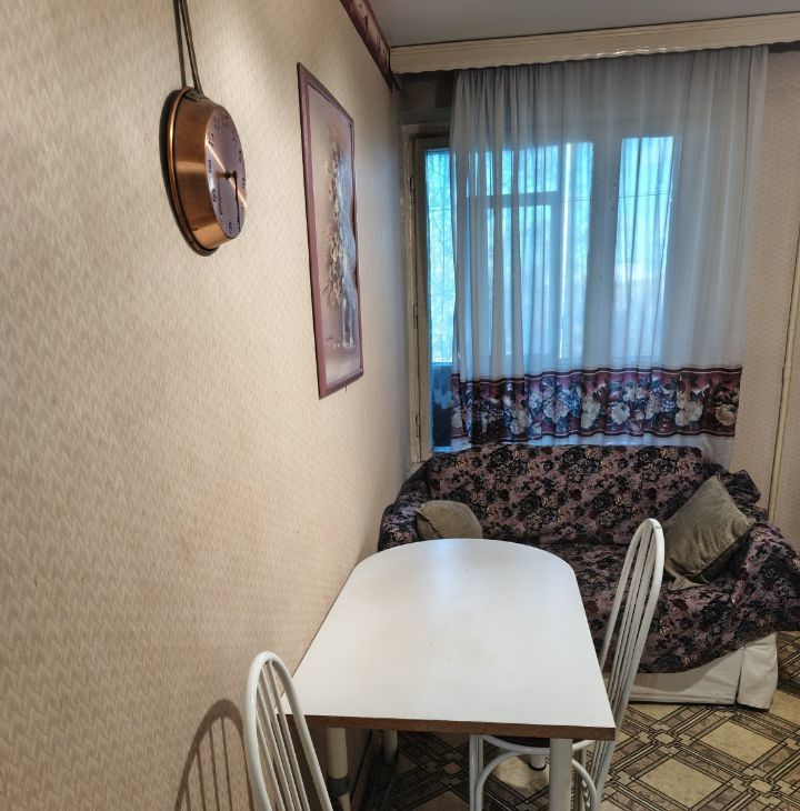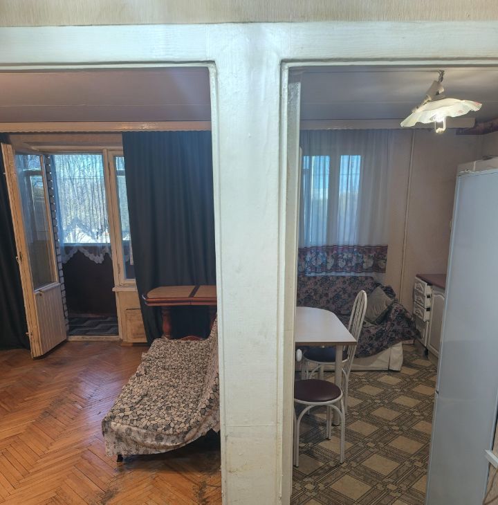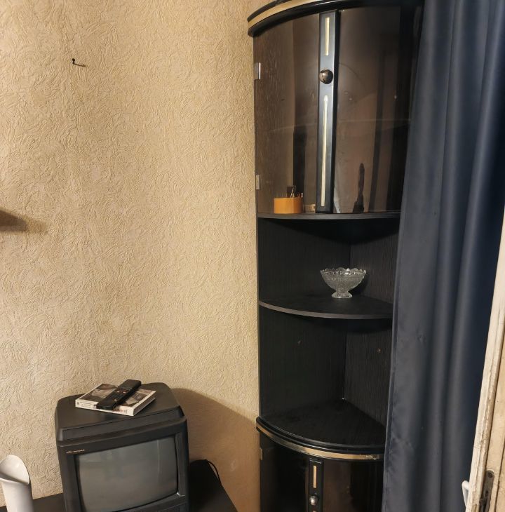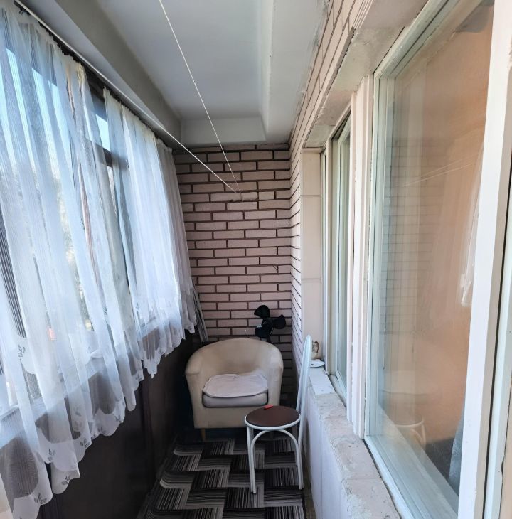 В комнате 2 дивана, шкаф. на кухне встроенный гарнитур, вся бытовая техника. Санузел раздельный. Большая застекленная лоджия.