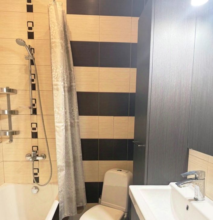 Хороший ремонт, сделанный со вкусом и любовью. Ванная комната в плитке.