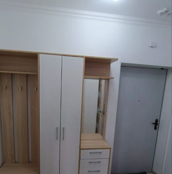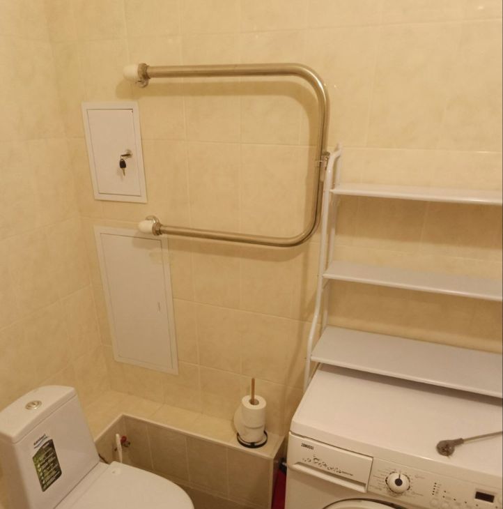 В комнате установлен диван, который раскладывается и превращается в полноценное 2-х спальное место, в коридоре установлена модульная прихожая. В с/у установлена стиральная машина-автомат.
