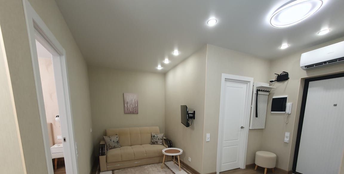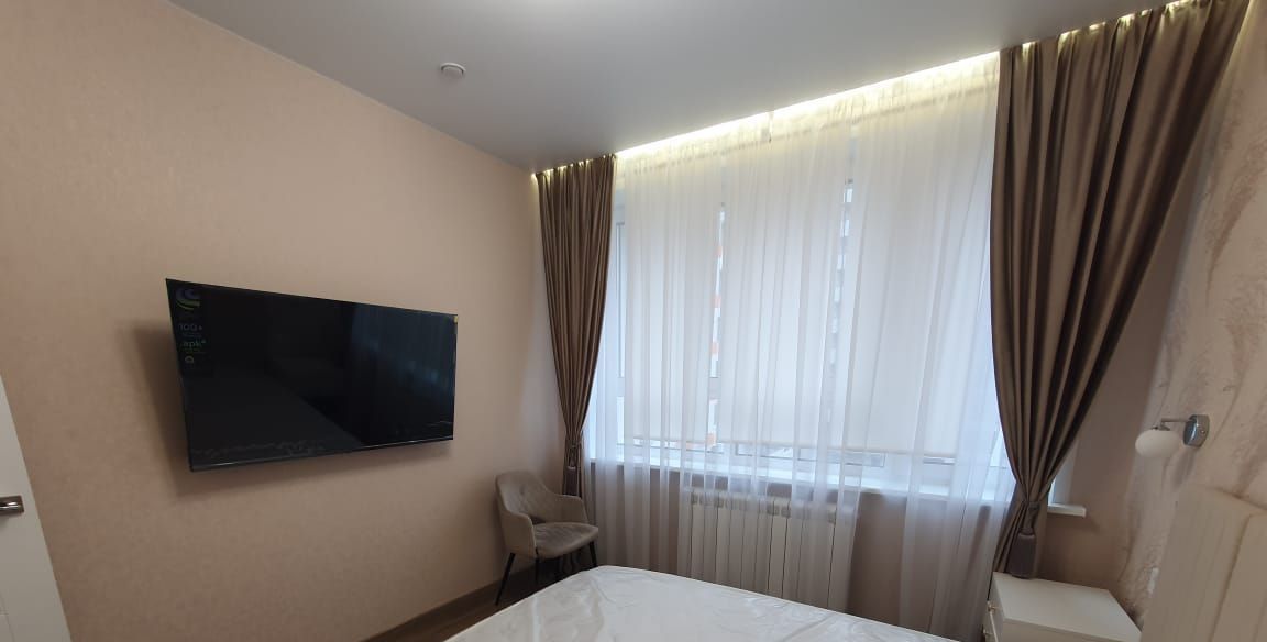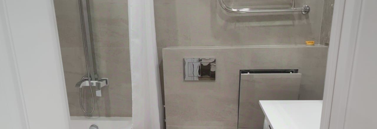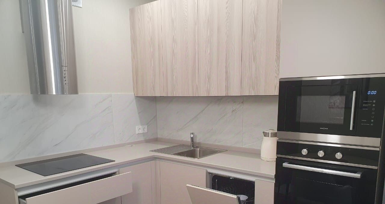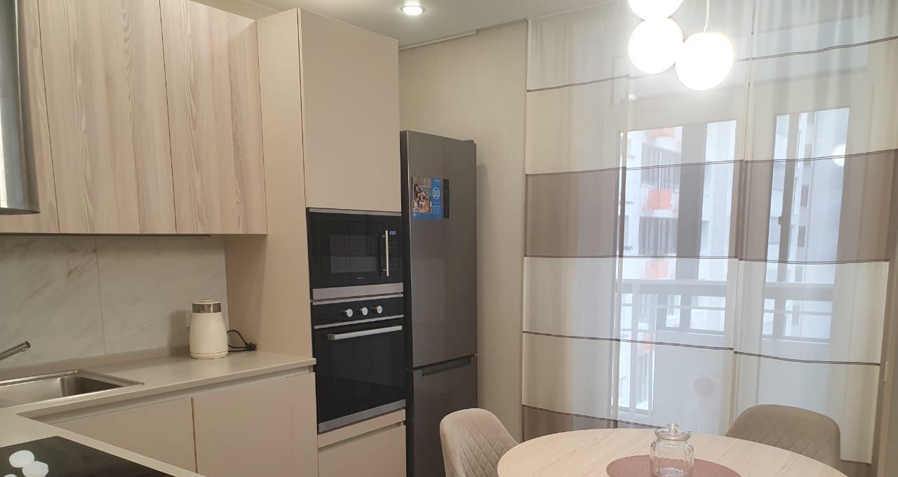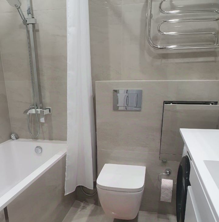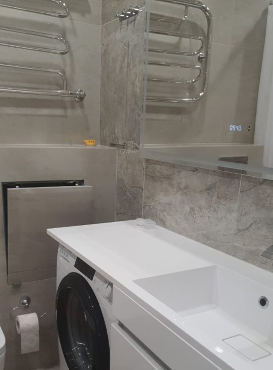 В квартире есть вся необходимая мебель и техника: кондиционер, холодильник, телевизор, посудомоечная и стиральная машины. Все предметы быта новые! Санузел совмещенный, оборудован ванной. На лоджии можно устроить уютное место для отдыха.