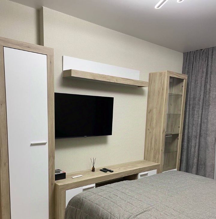 Квартира полностью меблирована, установлена двуспальная кровать с удобным матрасом.