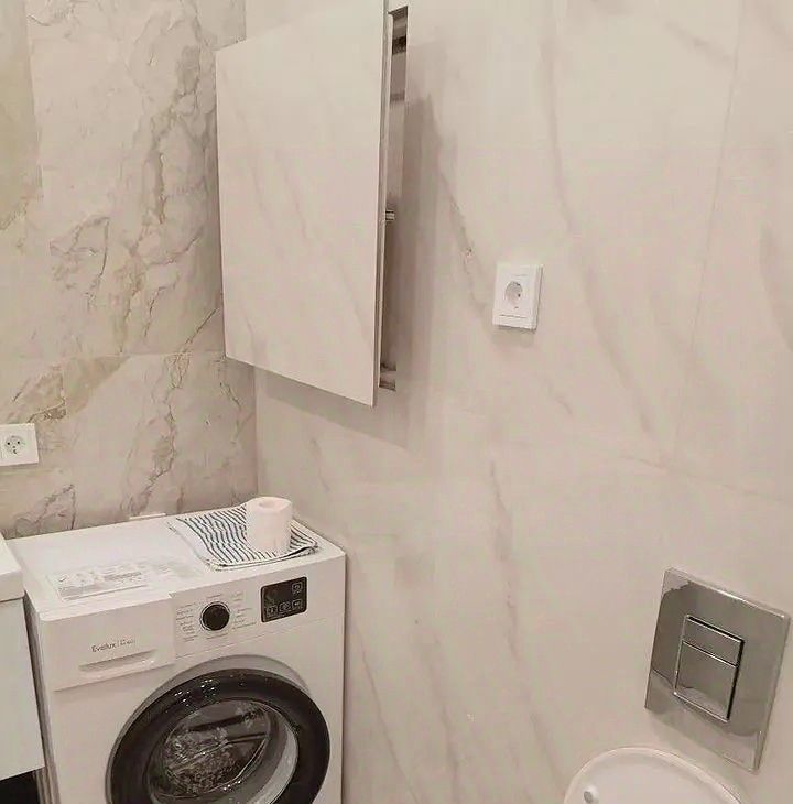 В квартире есть всё необходимое для комфортного проживания: кондиционер для поддержания комфортной температуры, холодильник и посудомоечная машина на кухне, стиральная машина. В комнате и на кухне имеется современная мебель (матрас на кровать привезут на дня). Санузел совмещённый, оборудован ванной.
