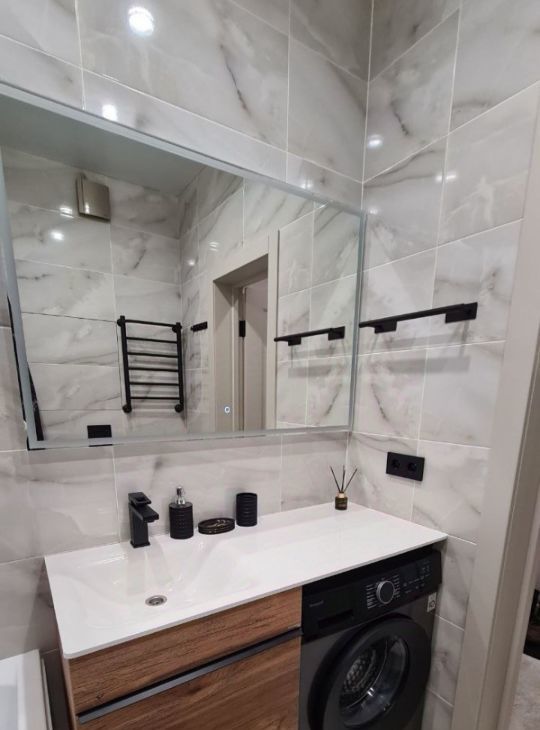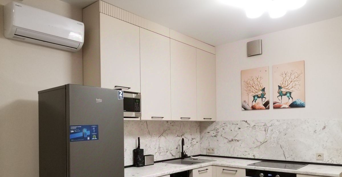 Уютная современная квартира со свежим ремонтом, все абсолютно новое. Созданы условия для комфортного проживания. В спальне двуспальная кровать с качественным матрасом, рабочее место и вместительная оборудованная гардеробная. В кухне-гостиной - современный кухонный гарнитур с духовкой, посудомоечной машиной, микроволновой печью, а для отдыха: удобный диван, телевизор, кондиционер, полы с подогревом.