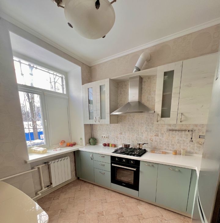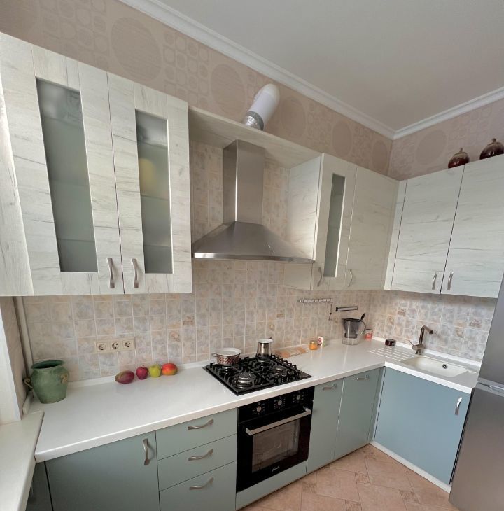 В квартире установлена сплит система Mitsubishi Electric. Так как в доме толстые стены, около полуметра, в квартире всегда комфортный микроклимат. Зимой тепло, летом прохладно и прекрасная шумоизоляция. На кухне новая мебель и техника - посудомоечная машина Bosch и итальянский духовой шкаф.