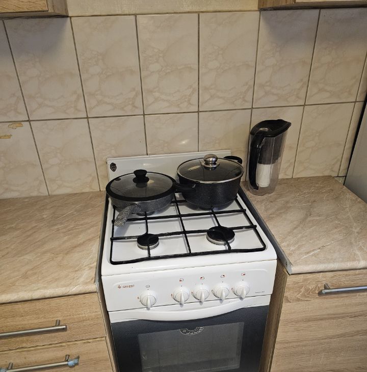 Квартира полностью готова к проживанию. В ней есть вся необходимая мебель на кухне и в комнате, а также техника: холодильник, телевизор и стиральная машина. Просторная кухня площадью 12 кв. м станет отличным местом для семейных обедов и ужинов.