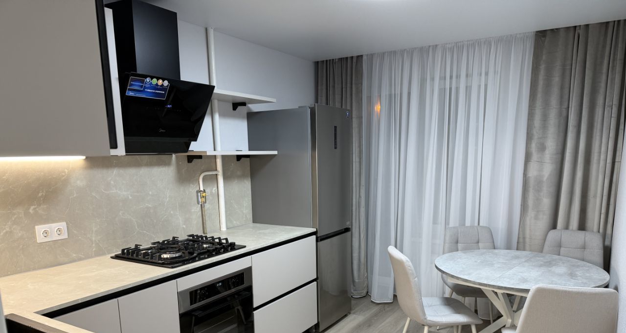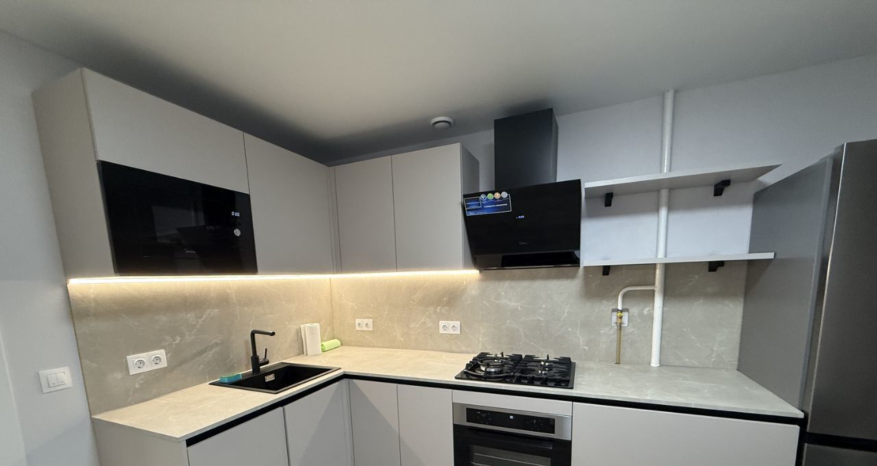Сдается 1к квартира 33 м2 только после капитального ремонта. Все новое. В квартире просторная кухня 11 м2 с мебелью Стильные кухни и выходом на застекленный балкон, комната со спальной зоной и зоной отдыха, полностью оборудованная большая гардеробная. Вся необходимая техника midea ( холодильник, духовой шкаф, варочная панель, микроволновая печь, посудомоечная машина, вытяжка, стиральная машинка с функцией сушки), кондиционер. Квартира оборудована системой защиты от перепадов напряжения и пр., системой от протечек Нептун.