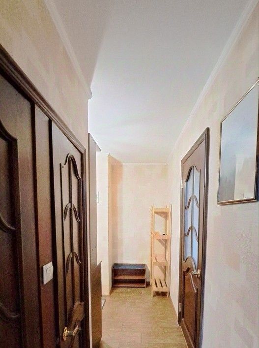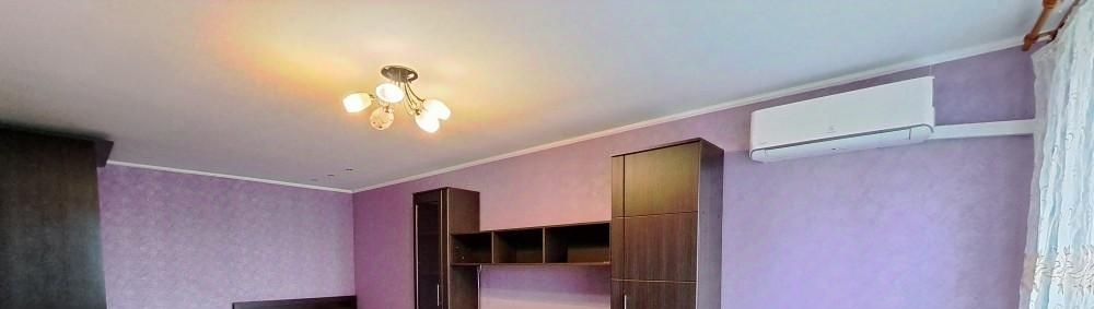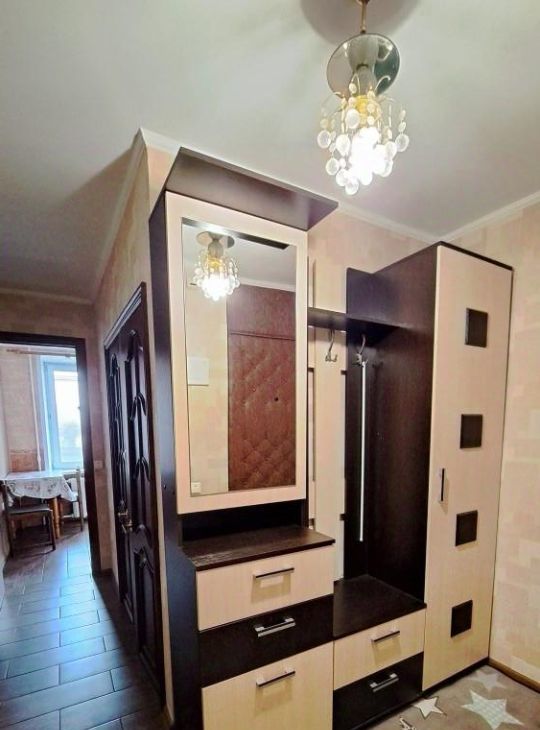 Просторная 1-комнатная квартира. Большая комната 21 м.кв. Кухня с балконом. В комнате: шкаф-купе, стенка, 2-спальная кровать и раскладной диван. На кухне модульная мебель, газовая плита с духовкой, стол, стулья. Есть бытовая техника: кондиционер, холодильник, стиральная машинка. Санузел раздельный. Окна в тихий зеленый двор. В подъезде два лифта.