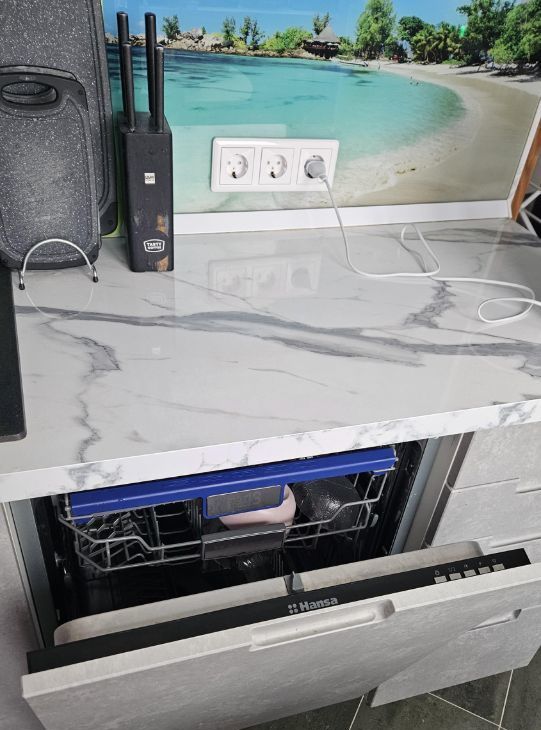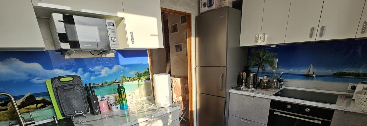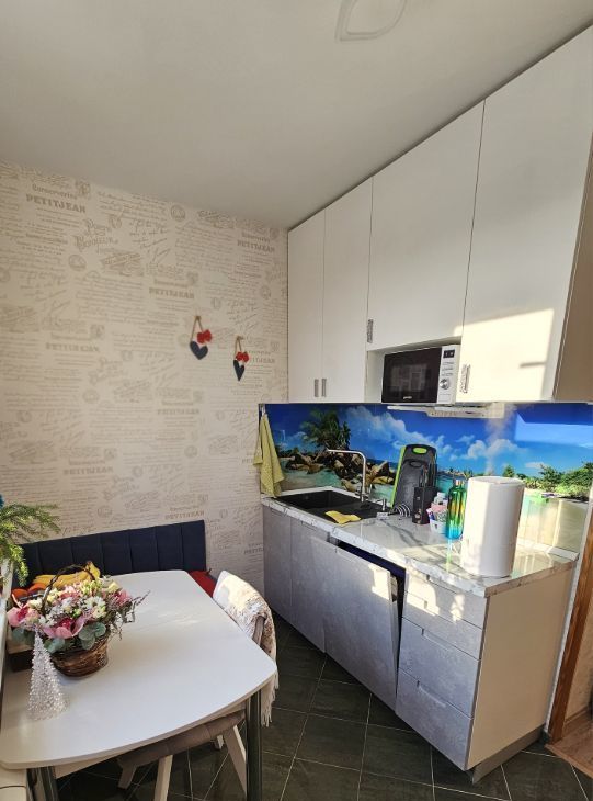 В квартире дорогая мебель и техника: посудомоечная машина, фильтры для питьевой воды, микроволновая печь, духовой шкаф.