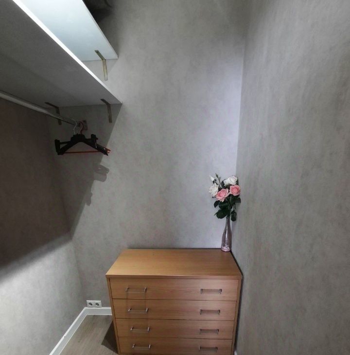 Большая застекленная лоджия с теплыми полами, которую можно использовать как кабинет. Для одежды предусмотрена гардеробная с комодом.