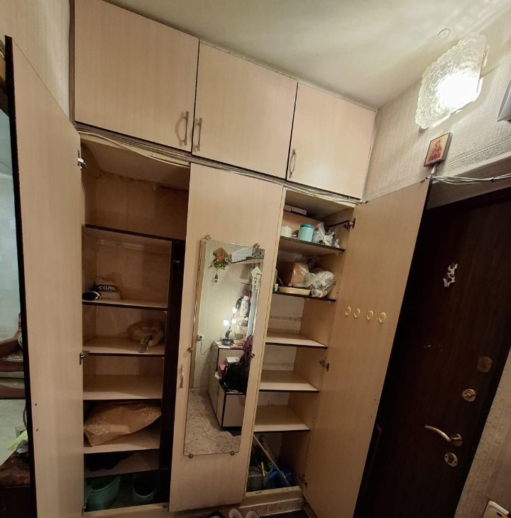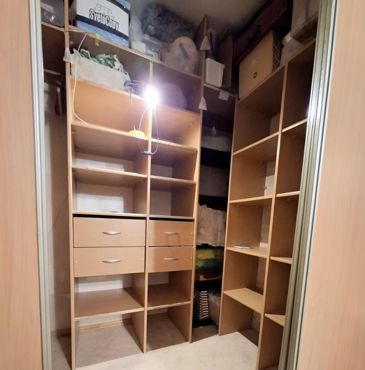 В комнате оборудована гардеробная+шкаф, 2х спальная кровать.