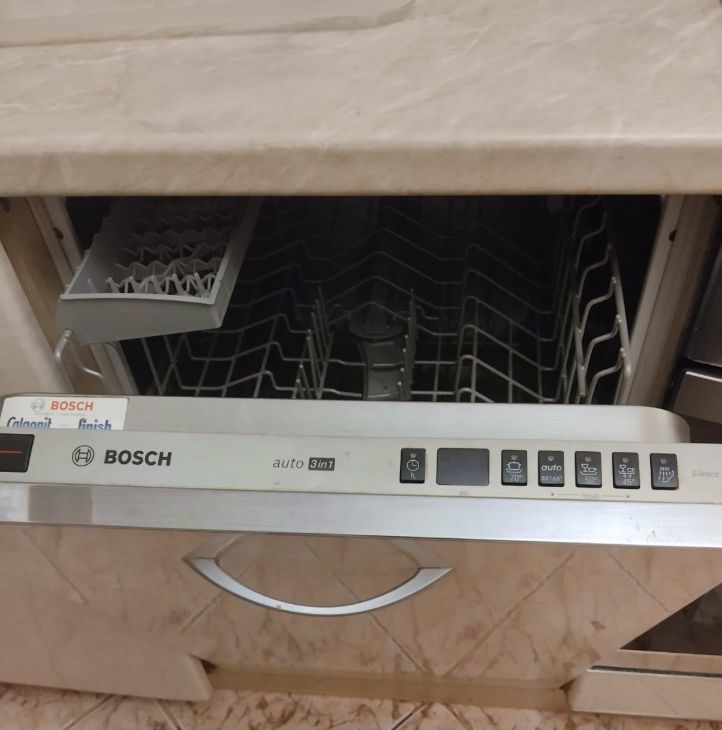 На кухне гарнитур, холодильник, посудомоечная машина, телевизор.