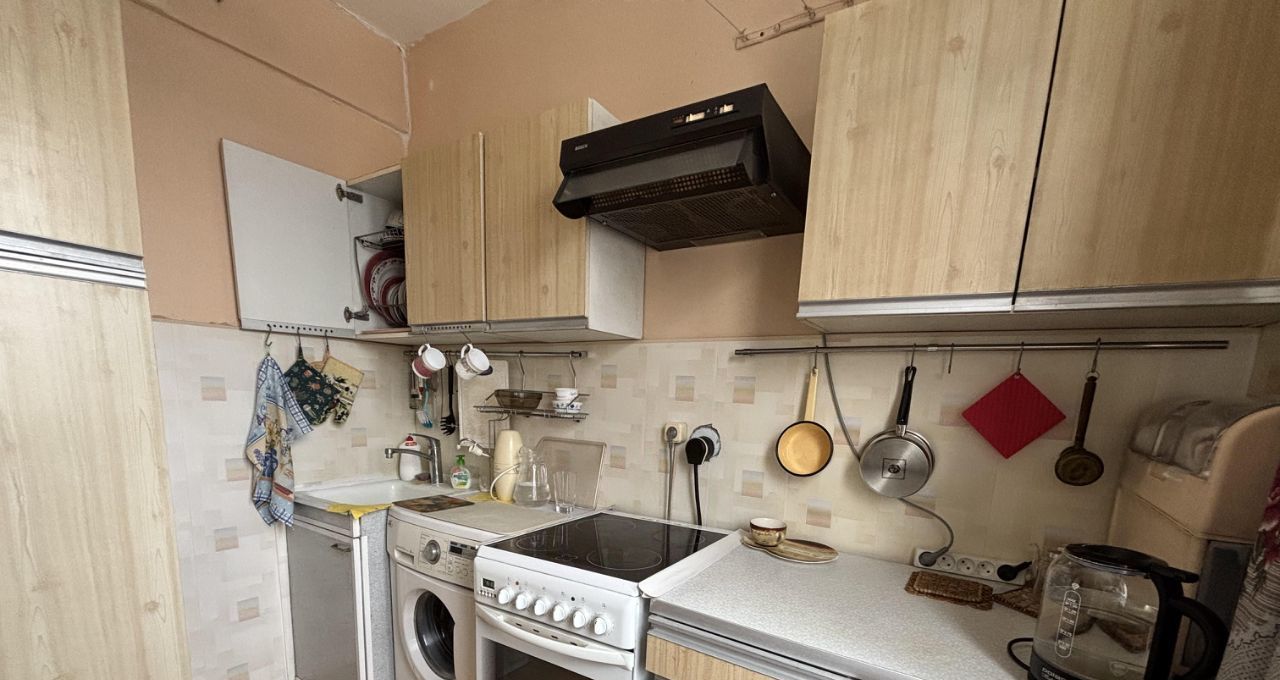 Общая площадь — 45.5 кв. м, жилая — 13.7 кв. м, кухня — 6.7 кв. м. Квартира расположена на 5-м этаже 12-этажного дома. Высота потолков составляет 2.5 метра. Из окон открывается вид на улицу. До метро можно дойти пешком за 17 минут.