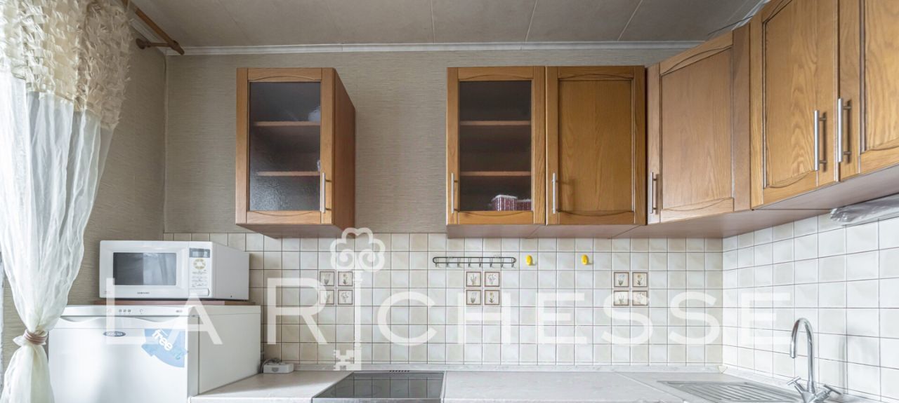 Квартира с простым, стареньким ремонтом, без излишеств — чисто и аккуратно, всё необходимое для проживания есть.