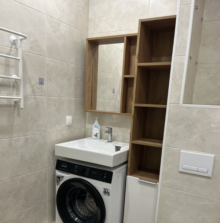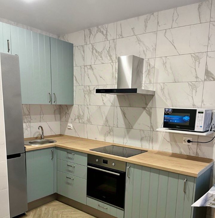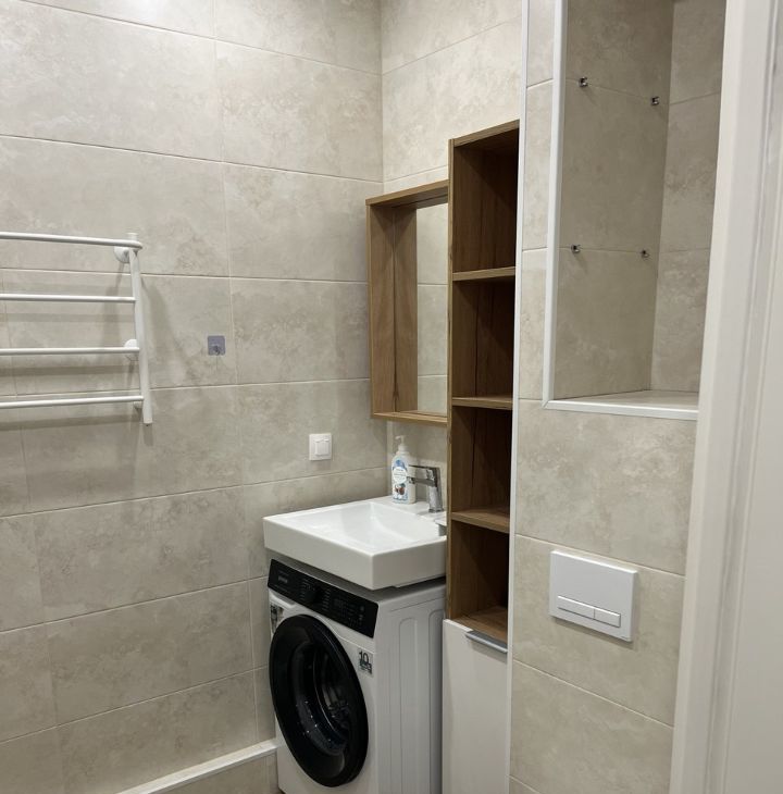 В квартире выполнен хороший ремонт, установлена новая мебель (шкафы, тумбы, двуспальная кровать, раскладной диван, кухня). Входная дверь заменена, с шумоизоляцией и зеркалом в пол. Есть сплит система, теплые полы в коридоре и санузле, полотенцесушитель, холодильник, стиральная машина, микроволновка, варочная панель все необходимое для комфортного проживания!