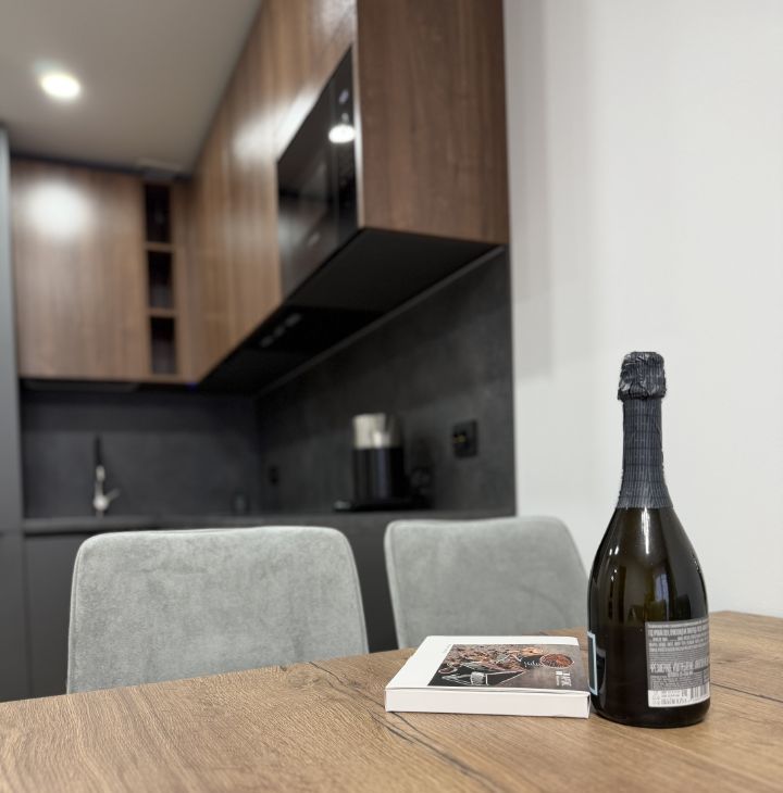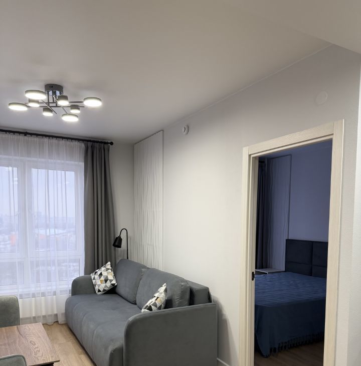 Общая площадь 32 кв.м, изолированная спальня, просторная кухня-гостиная.