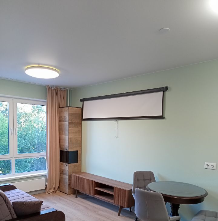 Техника : холодильник, СМ, СВЧ, варочная панель, духовой шкаф, вытяжка, утюг, пылесос, полотенцесушитель, сушка/белья, телевизор, роутер, проектор Lenovo+колонки+ настенно- потолочный рулонный экран . Уставлена система Умный дом. Система защиты от протечек. Установлен качественный 5-ти ступенчатый фильтр на воду.