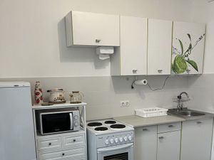 Сторона света - юго запад. Есть вся необходимая бытовая техника, гладильная доска, сушилка для белья.