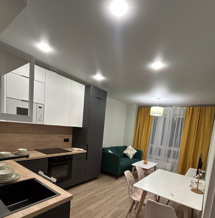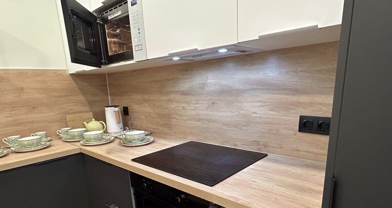 Новая мебель, вся необходимая встроенная техника : микроволновка, посудомоечная машина, индукционная плита, духовой шкаф, встроенный холодильник, стиральная машина, пылесос, утюг.