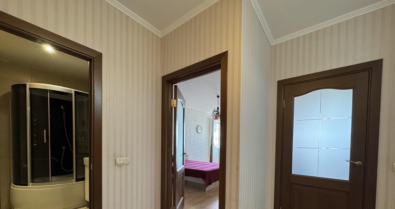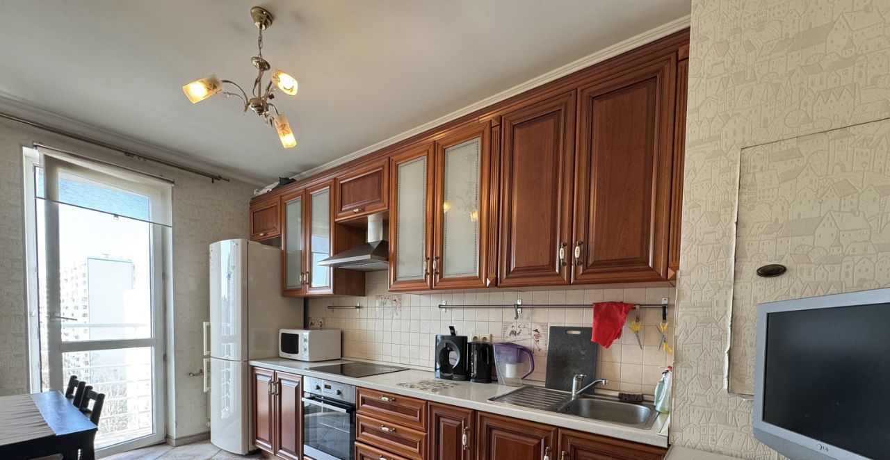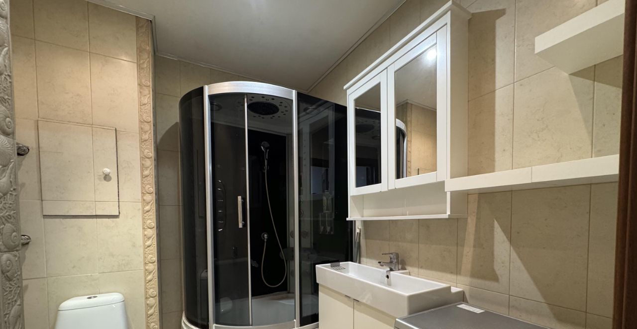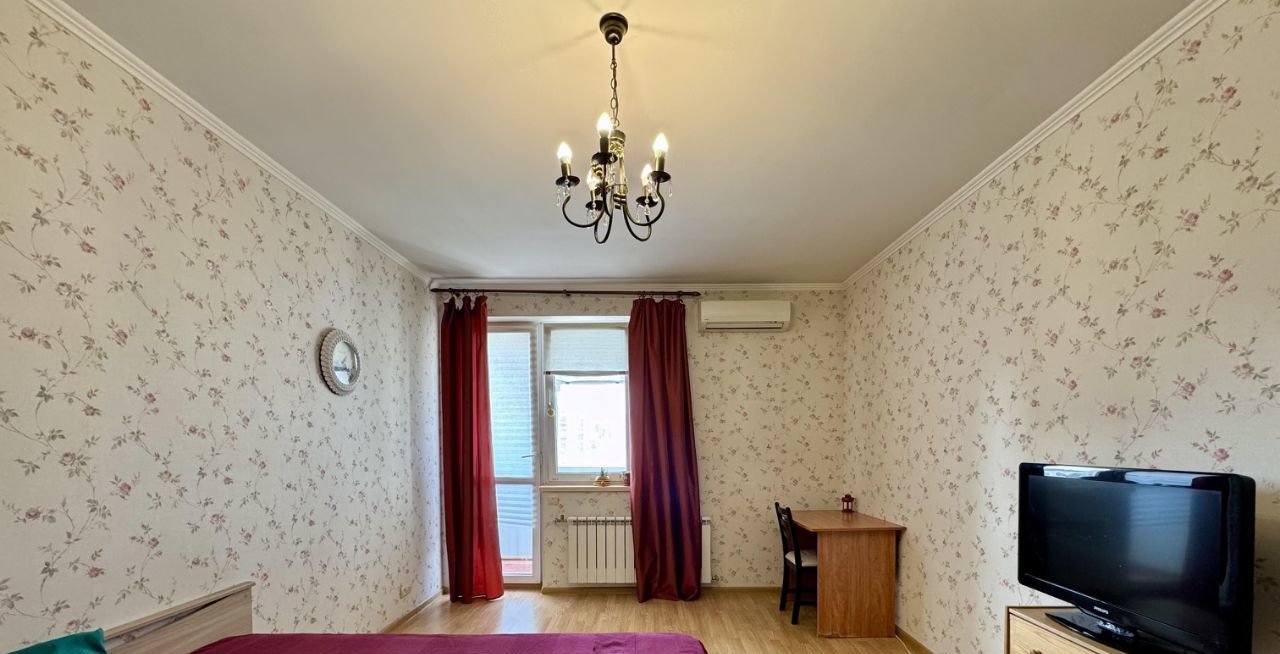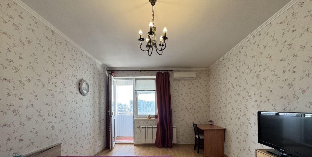 Просторные и изолированные комната и кухня с выходом на остекленную лоджию и французский балкон. Квартира светлая, в хорошем состоянии; обстановка включает мебель как на кухне, так и в комнате, а также всю необходимую технику: кондиционер, холодильник, посудомоечную машину, телевизоры и стиральную машину. Ванная комната оборудована душевой кабиной.