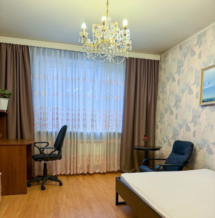 Квартира оборудована всей необходимой мебелью и техникой: стиральная машина, холодильник, СВЧ, ТВ, интернет. Стеклопакеты на окнах. Балкона нет.