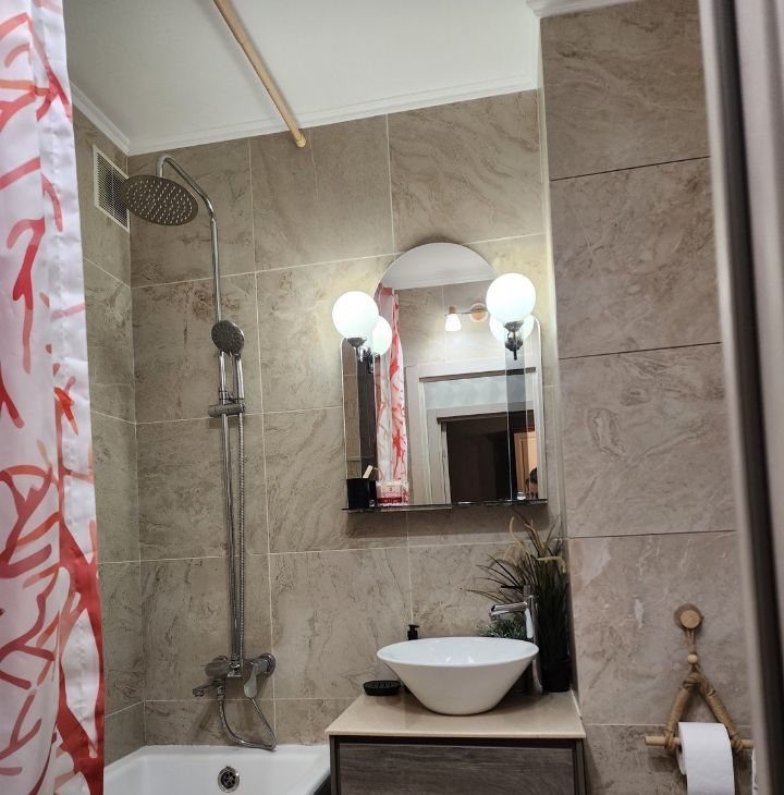 В квартире есть все необходимое из мебели и техники: стиральная машина, телевизор, посудомоечная машина, микроволновка, чайник, кондиционер.