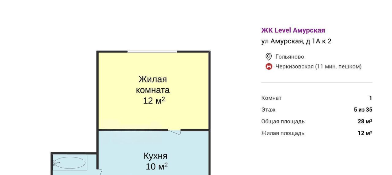 1-к кв. Москва Амурская ул., 1Ак2 (28.0 м²)