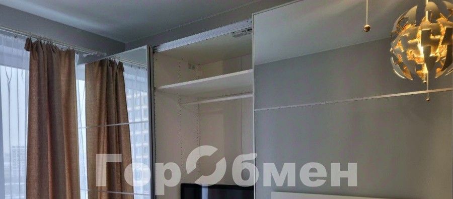 В комнате большая двуспальная кровать с ортопедическим матрацем. Установлен вместительный встроенный платяной шкаф. Телевизор в наличии.