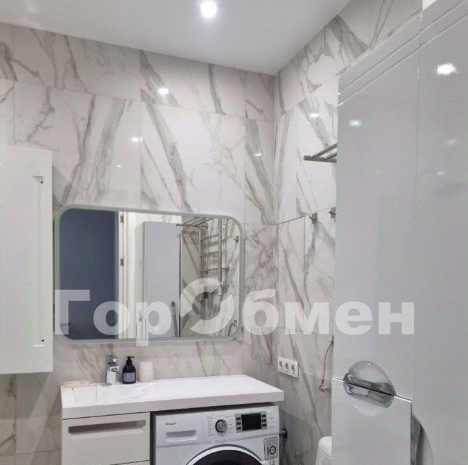 В ванной комнате расположена стиральная машина с функцией сушки.