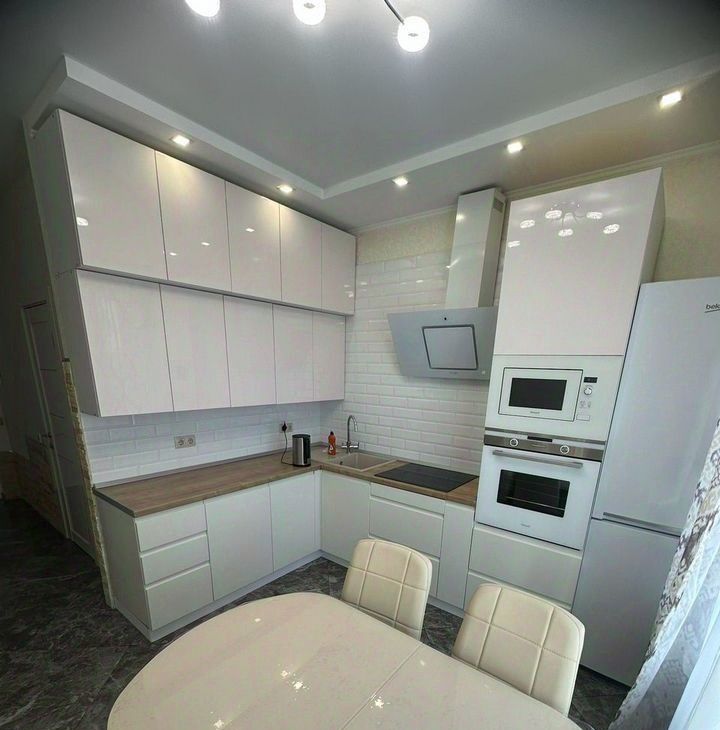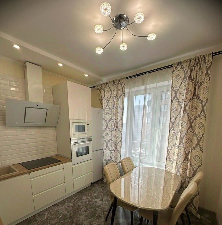 В квартире сделан евро ремонтом, мебель и бытовая техника: шкаф-купе, диван раскладывается, кухонная мебель со встроенной техникой, холодильник, стиральная машина, LЕD Телевизор 50 дюймов, микроволновка.