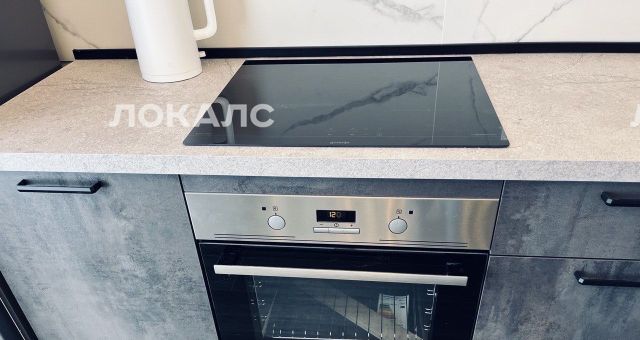Кухня: гарнитур-Стильные кухни, холодильник Gorenje, индукционная варочная панель Gorenje, вытяжка Bosh, духовка Electrolux, микроволновка Gorenje, посудомоечная машина Bosh, чайник, обеденный стол и 2 стула.