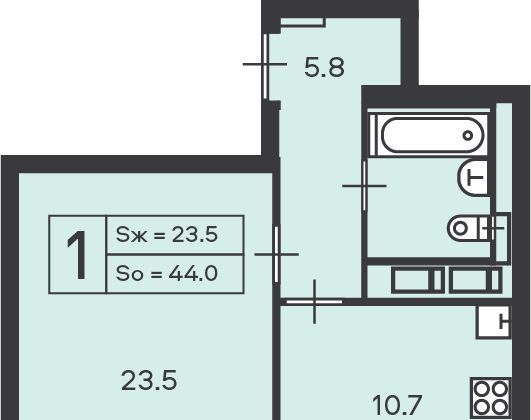1-к кв. Москва Амурская ул., 1к1 (44.0 м²)
